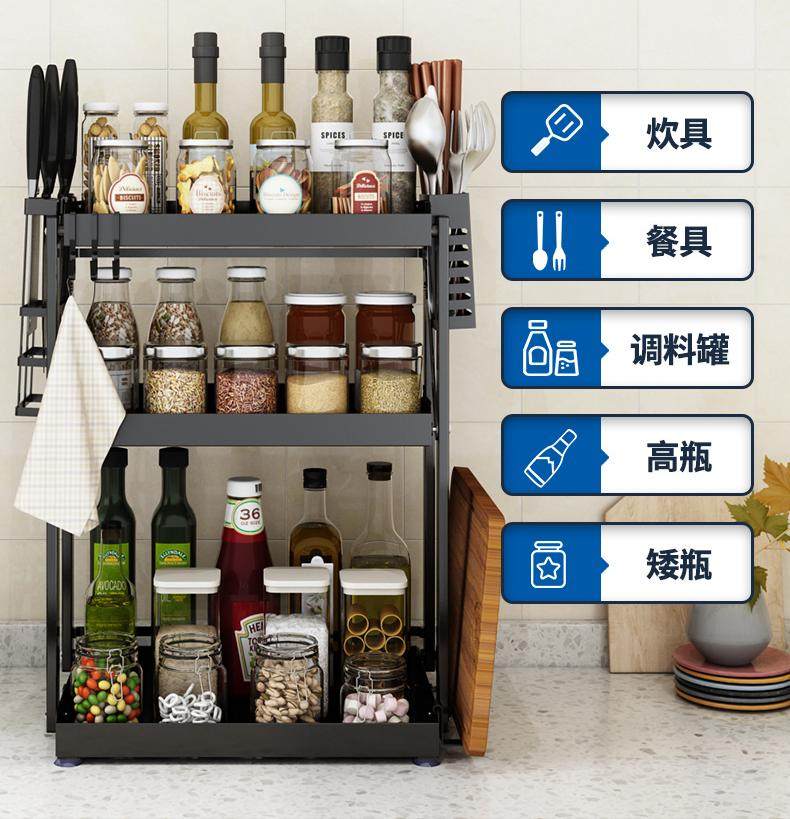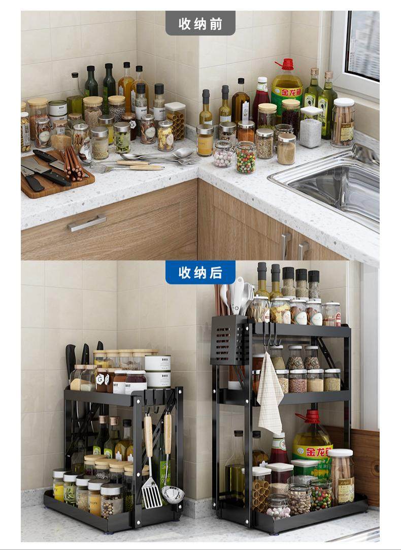 中餐的色香味,少不了调味料的辅助,每一个中式家庭的厨房里充斥着大大小小的瓶罐调味品,比如盐、酱油、醋等等,这些都作为厨房的必备品而存在。对此,免安装折叠调味料置物架,分分钟解放操作台空间。所有的瓶瓶罐罐分区存放,整整齐齐,随手拿取使用,省去了不少翻找的麻烦。