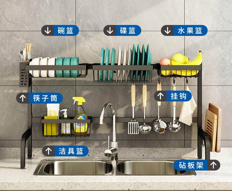 传统沥水架置于桌面,占空间不说,底盘的水渍也要定期清理,不然轻易就发霉有味道。而直接在水槽上方放置的水槽置物架,既可方便拿取碗碟,又能沥干碗碟,不易滋生细菌。除此之外,碗碟沥水架还能充分的利用空间,碗碟被收纳的整整齐齐的,看上去干净又美观。